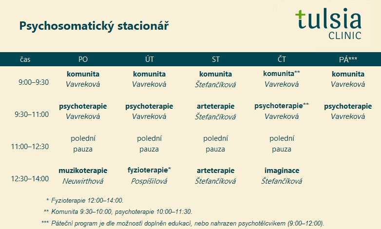 Po dobu trvání stacionáře lze čerpat pracovní neschopnost, kterou zajišťuje naše pracoviště. Pro smysluplnou účast ve stacionáři je nutné počítat s účastí v programu stacionáře v plném rozsahu.